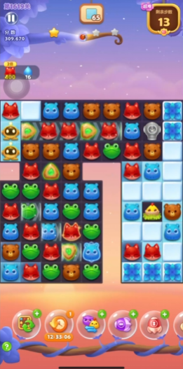 角落里的冰块往往是最难处理的,特别是右下方区域。建议在游戏后期集中组合魔力鸟特效,魔力鸟与其他特效交换能快速清理这些顽固的冰块。步数紧张时要合理规划每一步,避免浪费在无效消除上。左侧区域生成的横向特效可以留着备用,等右侧需要时再使用。特效组合的时机很重要,最好等到能同时清除多个目标时再释放。