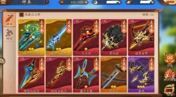 神器铸灵是提升战力的重要途径,通过强化神器属性让武将发挥更强实力。铸灵需要消耗红色神兵碎片,这些碎片可以通过回收多余的紫色或橙色神兵获取,或者在神兵商店兑换。金色神兵的铸灵阶数与星级挂钩,0星神兵只能铸灵到0阶,随着星级提升才能解锁更高阶铸灵效果。每次铸灵都会消耗碎片,阶数越高消耗越多,建议优先集中资源培养核心武将的神器。