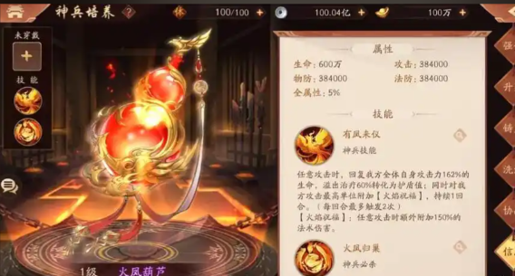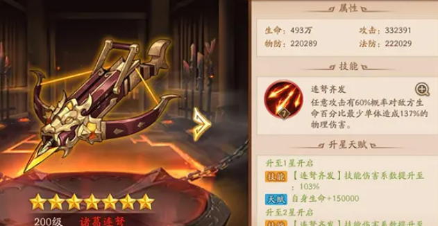 优先为金色神兵激活木灵效果,虽然消耗不大但能提供全队属性加成,性价比极高。如果手上有龙胆亮银枪、苍叶绿绮琴这类金色神兵,可以优先铸灵到3阶以上,大幅提升暴击率或治疗效果。红色神兵中火云剑、雌雄双股剑和诸葛连弩是铸灵的重点对象,它们的基础效果优秀,铸灵后能显著增强输出或生存能力。