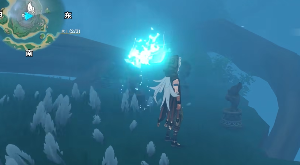 第一阶段供奉位于逢丘之野的栖木,三根羽毛分别位于树后、移动至雷屏障内的路径以及丘丘人屋顶。其中右上角的羽毛需携带雷种子进入屏障,右下角的羽毛需击败守卫的丘丘人。第二阶段在知比山,需先引导三个仙灵归位以降低水位,随后在水下遗迹中收集羽毛。此处羽毛会分散移动,需跟随至石门处并通过继电石解谜开启机关。第三阶段位于千来神祠,羽毛分布在地面坑底和相位之门路径上,需利用相位之门快速追踪移动的羽毛。
