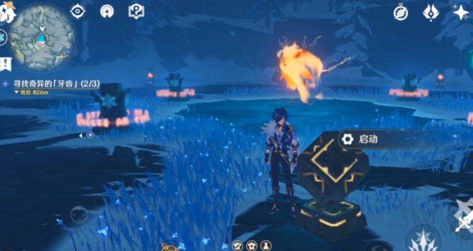 首先咱们要传送到眠龙谷左下方的传送点,落地后往遗迹方向走。在遗迹中央会看到一个开关,上方飘着仙灵,互动启动开关后,仙灵会依次停留在几根冰柱旁,记住它的路线并按相同顺序用火元素点亮冰柱。完成后会激活三个遗迹守卫,击败它们后地面会塌陷,露出通往地宫的入口。