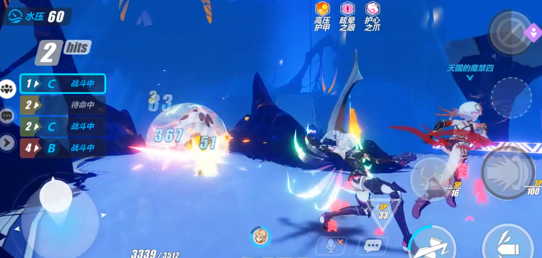 海渊之眼作为崩坏3的大型团队挑战副本,采用12人联机模式,分为四个3人小队协同作战。其中两支队伍由75级以上玩家组成,主要负责BOSS关输出;另外两支队伍由55-74级玩家组成,主要承担降水压关任务。副本采用阶段式推进机制,每周首次通关各阶段可获得对应奖励,重复攻略仅能获取协助奖励。水压机制是核心玩法要素,表现为数值化的敌人减伤比例,需通过击破水位控制器来降低水压值。