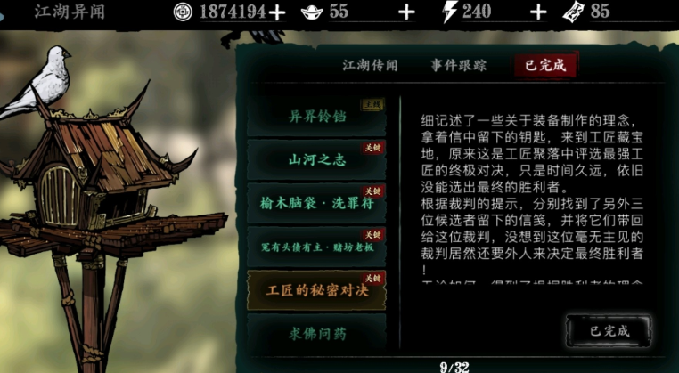 拿到狂铸师的混乱这件装备,咱们得先完成一个叫工匠的秘密对决的支线任务。这个任务在谢园地图的主屋里触发,找到紫色任务标记后就能接取。任务最后会让你回到工匠藏宝地,记得在四个铸造师中选择狂选项,这样才能拿到装备图纸。有了图纸后,还需要准备100个精钢板、30个黑钢、20个陨铁和10个缚罪作为锻造材料,攒齐这些就能打造出这件传说装备了。