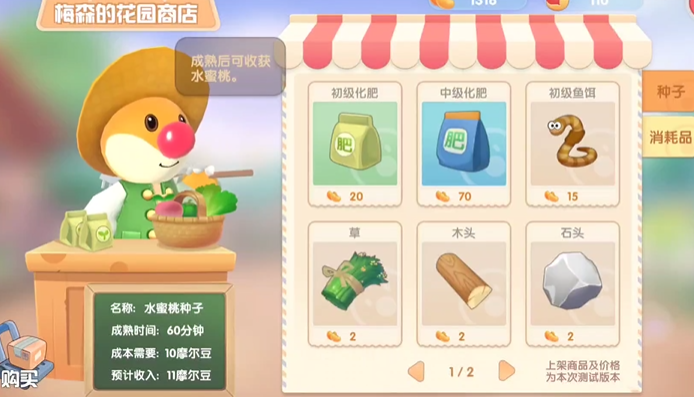梅森售货机的主要功能是提供种子购买和农产品出售的便捷渠道。与常规商店交互相比,该设备可直接放置在家园中,省去了往返NPC处的时间消耗。售货机库存包含基础农作物种子,部分稀有种子需要通过提升梅森好感度解锁。每日购买次数存在限制,但会随游戏进程逐步扩展。设备操作界面采用标准化设计,分为购买、出售两大功能分区。
