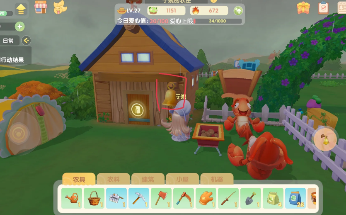 让散养的鸡回到房间主要通过摇动禽舍内的铃铛实现。玩家需要先进入家禽小屋,找到墙壁上悬挂的黄色铃铛并与之互动,摇铃后等待片刻,农场里的小鸡就会陆续回到屋内。需摇铃后动物不会立即返回,而是需要一定时间慢慢走回,这是游戏设定的自然行为模式。