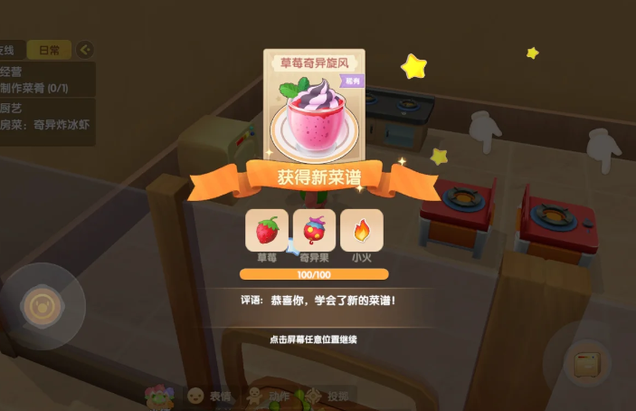 草莓在游戏中具有多种用途,是制作草莓奇异旋风、草莓七彩汤等料理的基础材料。草莓奇异旋风需要3个草莓和2个奇异果,属于4星级料理;草莓七彩汤则需搭配其他食材。这些料理可用于出售获取摩尔豆或赠送给特定NPC提升好感度,因此稳定获取草莓对游戏进程具有实际意义。