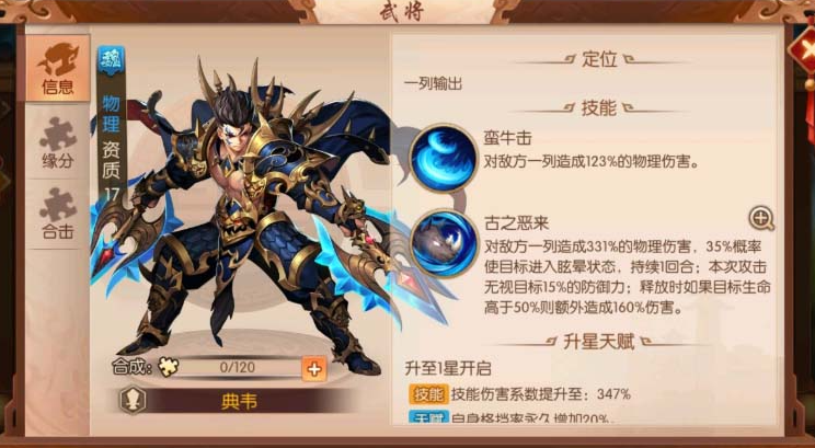 阵容构建方面,推荐采用三盾三输出体系。前排选择典韦、曹仁等防御型武将吸收伤害,中排配置张辽等爆发型输出,后排则安排诸葛亮与大乔形成控场-治疗联动。特殊情况下可加入张郃提升命中率,弥补魏国武将命中缺陷。该组合需注意武将站位,远程单位应置于最远位置避免过早阵亡,近战单位需卡位保护核心输出点。