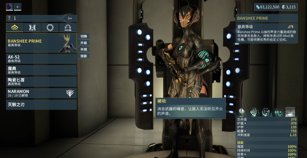 恸哭女妖战甲走的是暗黑风格路线,喜欢酷炫造型的小伙伴肯定会爱上她。整体设计带着点哥特元素,但又不失未来科技感,特别是释放声波技能时的特效,黑色能量波纹配上战甲本身的金属质感,简直帅到没朋友。这款战甲特别适合喜欢暗色系搭配的玩家。