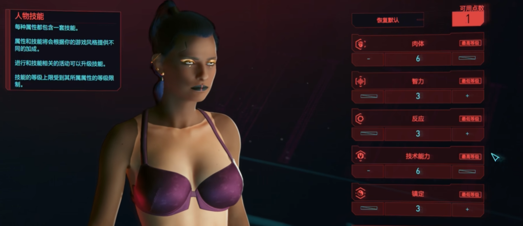 加点策略需结合玩家选择的游戏风格。若倾向近战或重型武器,优先提升肉体和反应;若偏好黑客玩法,则重点投资智力与技术能力;喜欢潜行暗杀的玩家可侧重镇定属性。技术能力达到18点后可制作传奇武器,但需注意属性点无法重置,仅能通过义体医生花费100000元重置专长点数。