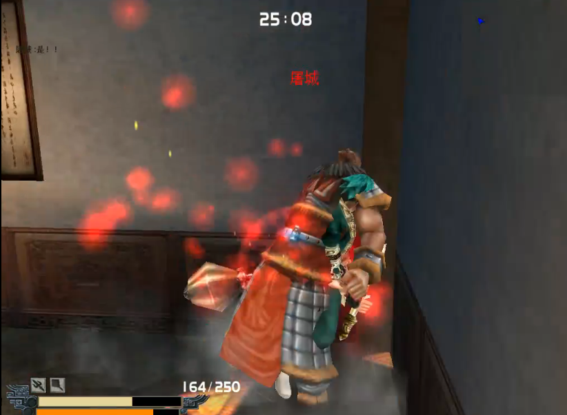 三楼最终战面对屠城和范璇时,集中火力先打屠城。范璇不用管,击败屠城后他会自动消失。如果觉得正面刚太难,可以尝试屋顶跳捷径——从长廊顶三角屋顶跳到顶层平台,直接绕到三楼优先解决屠城,再回头清理其他敌人。记得楼上凳子藏着补给,血线危险时及时补充。