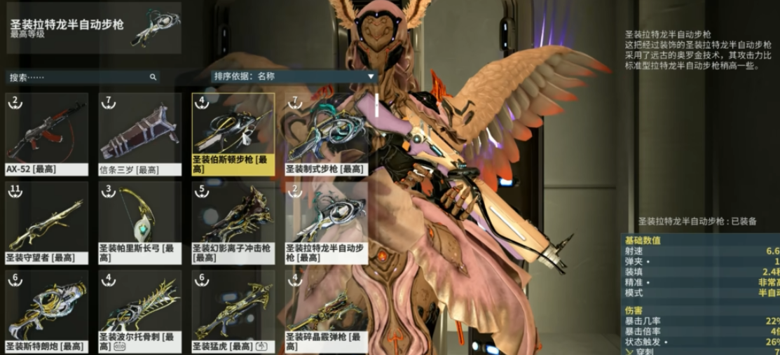 接下来要推荐的是圣装拉特龙,这把半自动步枪手感特别舒服。它最大的特点是稳定性和精准度都很出色,中远距离点射特别给力。开启全自动模式后,持续输出能力也不容小觑。建议优先提升它的暴击伤害和射速,这样无论是打小怪还是对付精英单位都很顺手。