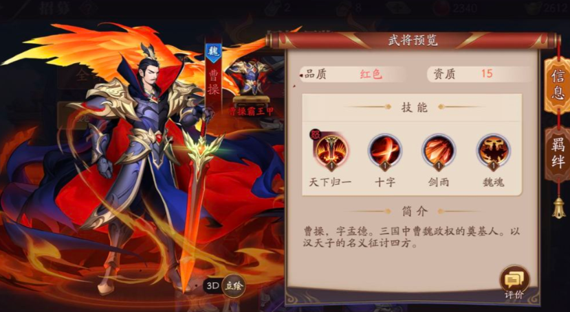 魏国作为放开那三国3中高攻击与高生存能力的代表阵营,其红将阵容以爆发输出和稳定防御为核心。核心红将包括司马懿、张辽、许褚、典韦、曹操、郭嘉等,每位武将具备独特的技能机制和战场定位。司马懿以群体伤害和减益效果为主,张辽擅长单体突进秒杀,许褚则是前排承伤核心,典韦提供高额物理爆发,曹操作为团队增益型统帅,郭嘉则兼具控制与法术输出能力。这些武将的组合能形成攻守兼备的阵容体系。
