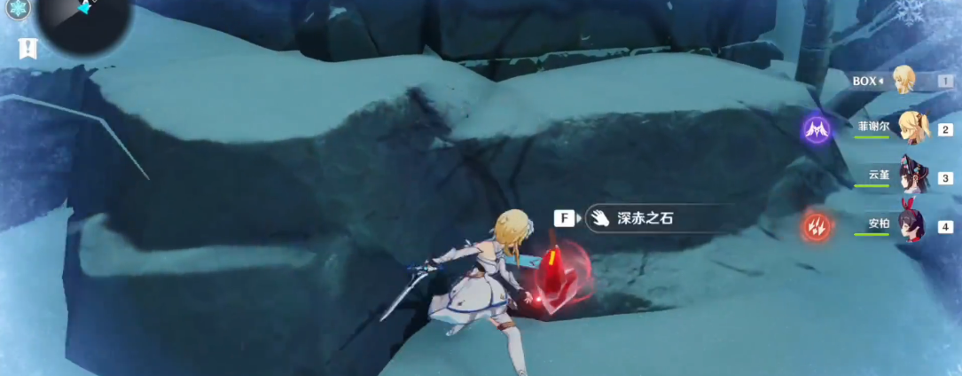 打碎雪山传送点附近的特殊石头,关键在于找到并利用深赤之石。这种红色石头通常分布在目标冰块附近,打碎后会掉落可拾取的能量。拾取后角色周围会出现红色光环,快速返回目标石头处用普通攻击就能成功击碎。需深赤之石提供的buff有时间限制,动作要迅速。