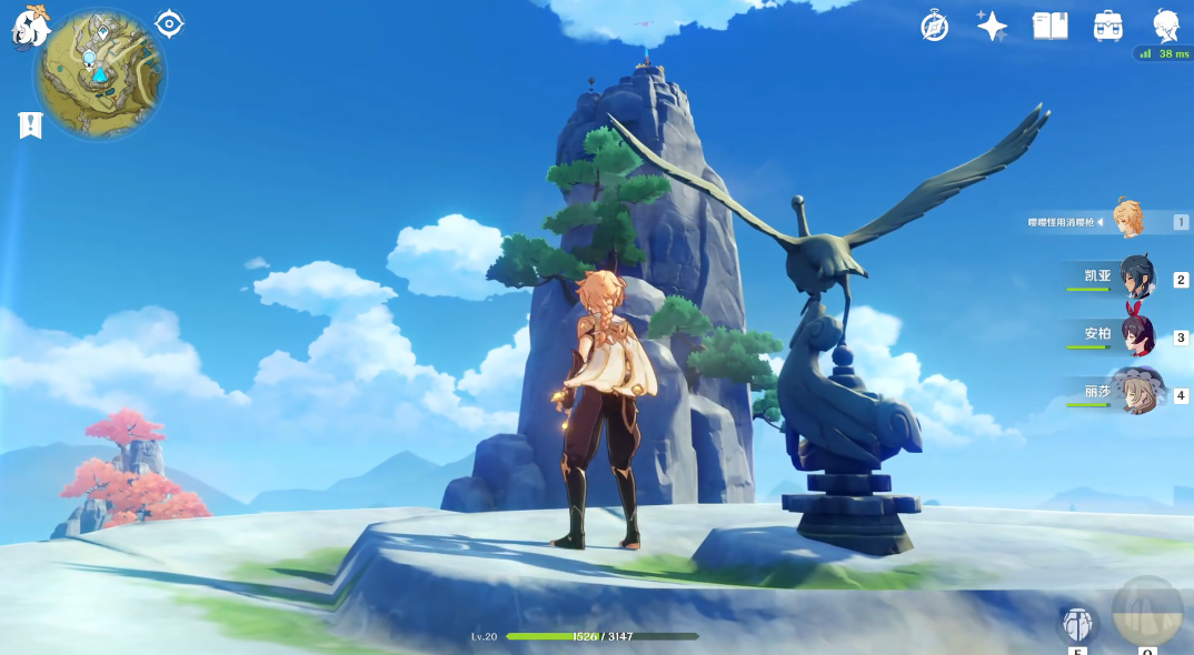 接下来咱们要解开三山叩首的机关谜题。需要去奥藏山顶、琥牢山和庆云顶三处地方调整仙鹤石像的方向,让它们都面朝庆云顶。奥藏山的仙鹤在传送点旁有枫树的山头,琥牢山的在传送点旁石柱上,庆云顶的则在南边圆形平台的小山头。调整好后会解锁强力风场。