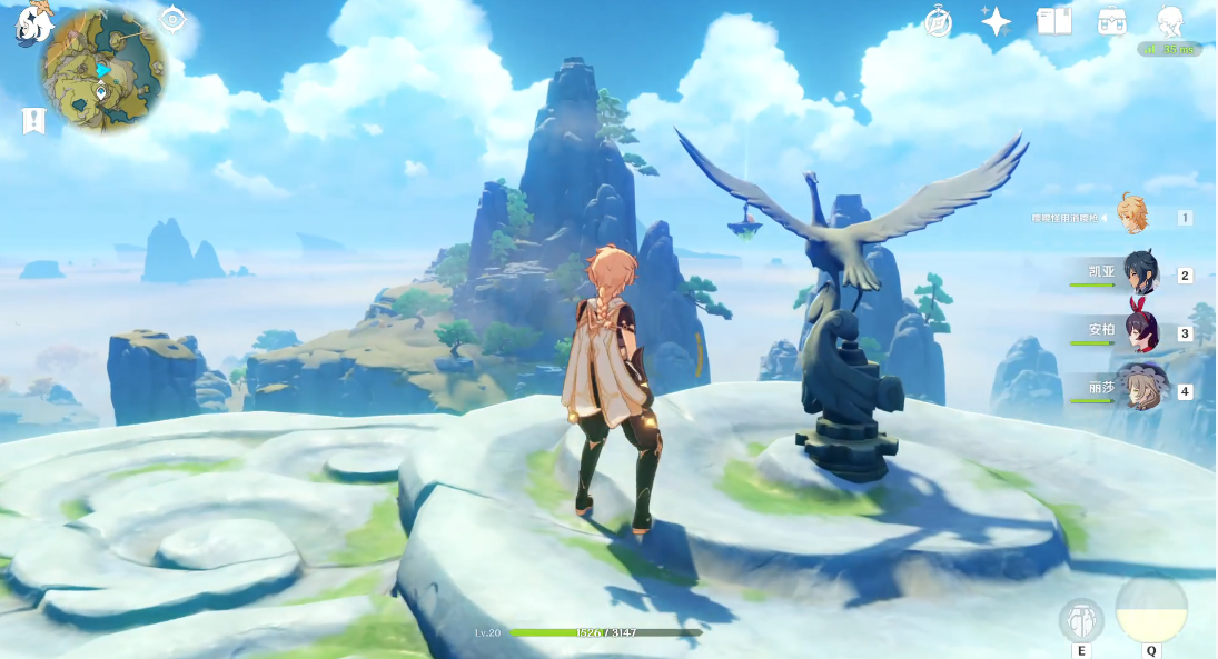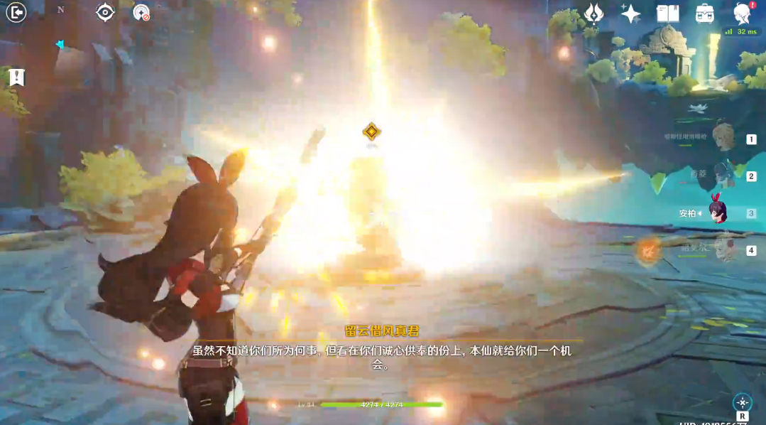 借助风场就能飞到庆云顶的浮空岛了,这里要注意控制好飞行方向。浮空岛上能找到一张重要图纸,拿到后返回仙人洞府就能正式进入。洞府里会遇到留云借风真君,需要完成她设置的几个挑战,包括限时击败敌人和解谜火元素方碑。
