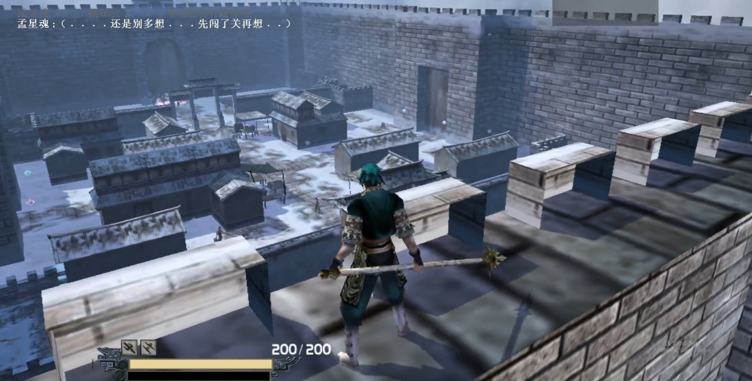 尽管初始武器为长枪,但其重量不影响轻功施展,重锤或大刀等重型武器同样适用。城中商铺可获取护甲与补给道具,建议在血量不足时及时返回城楼恢复。最终破坏城门时,若采用全杀路线需保留气力释放绝招,快速清理残余敌人。