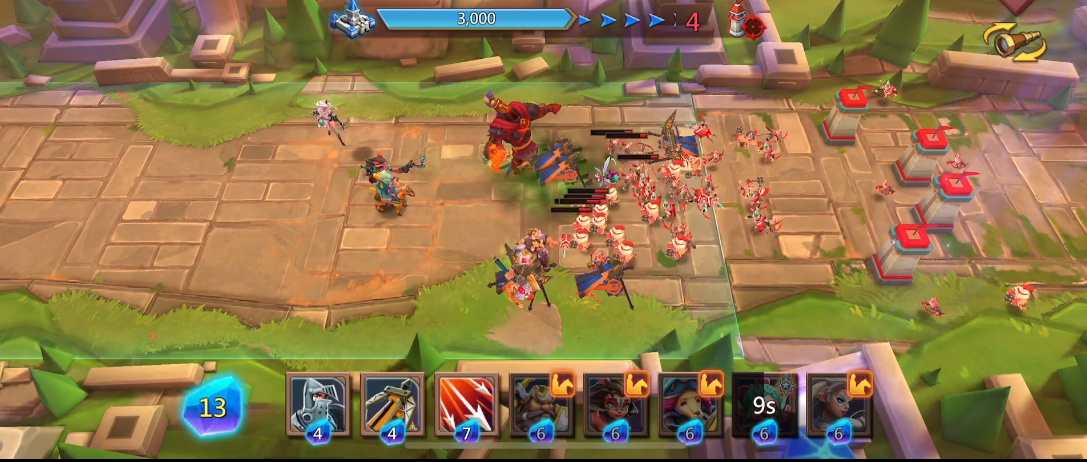战斗中要灵活运用阵型保护机制,至少配备1名具备嘲讽能力的坦克英雄来吸引火力。推荐将远程输出单位放置在地图高地,既能扩大射程又能避免被冲锋。每25秒会刷新一波治疗图腾,建议预留单体爆发技能快速处理。当敌方血量低于40%时,可以派出收割型英雄进场清理残局。记得在第三波图腾刷新阶段集中使用药水,确保关键输出位存活。