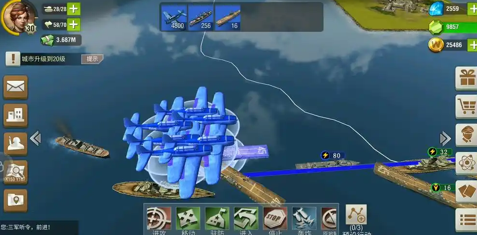 战舰的战术运用需结合战场环境灵活调整。驱逐舰适合快速突袭敌方运输线或侦察敌情,巡洋舰可配合主力舰队提供火力支援,战列舰则应部署在安全位置进行远程炮击。航母的舰载机可对敌方舰队和建筑造成毁灭性打击,但需防范敌方防空火力和战斗机拦截。舰队编组时应注意兵种搭配,例如用驱逐舰掩护战列舰、巡洋舰保护航母等。战斗中需实时关注战舰状态,及时撤退受损单位进行维修,避免不必要的损失。