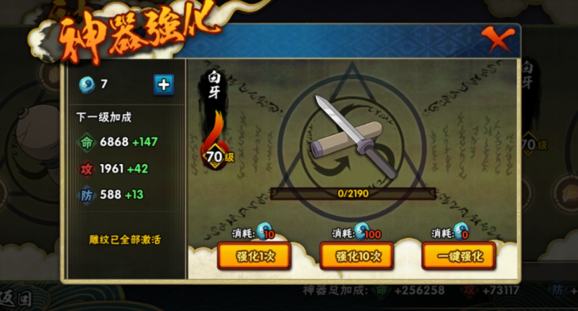 修罗副本是获取高阶装备的关键,普通副本掉落紫色忍具,而修罗副本有概率产出橙色或究极忍具。究极忍具作为稀有度最高的装备,仅能通过修罗副本或传说套装合成概率获得,合成需消耗特定材料且成功率较低。建议优先积累保底积分机制所需的500分,确保阶段性获取究极忍具。装备强化需消耗忍具锻造石,可通过分解多余装备或组织挖矿获取,强化时需注意材料分配优先级。