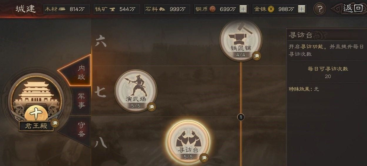寻访系统是另一个获取四星武将的稳定方式,但需要先将君王殿升级到8级以解锁该功能。委任高政治或魅力属性的文官到寻访职位,能提高获得稀有武将的几率,这需要玩家在游戏早期就注重内政建设。参与游戏内的限时活动和赛季奖励,也有机会直接获得四星武将作为奖励,这部分来源往往被新手忽略,但能有效补充阵容。