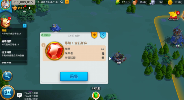 野外采集是另一个稳定的红宝石来源,当你的市政厅达到16级后,就可以研究相关的科技,然后派遣部队去地图上寻找宝石矿床。建议优先选择高级矿点,如二级矿,它们通常分布在圣地附近,效率更高。记得搭配有采集加成的统帅和装备,比如埃及艳后,这样可以提升采集速度,每次挖矿还能多拿一些额外红宝石,注意安全时段操作,比如凌晨或人少的时候,减少被其他玩家干扰的风险,这样能让你更高效地利用体力,逐步增加库存。