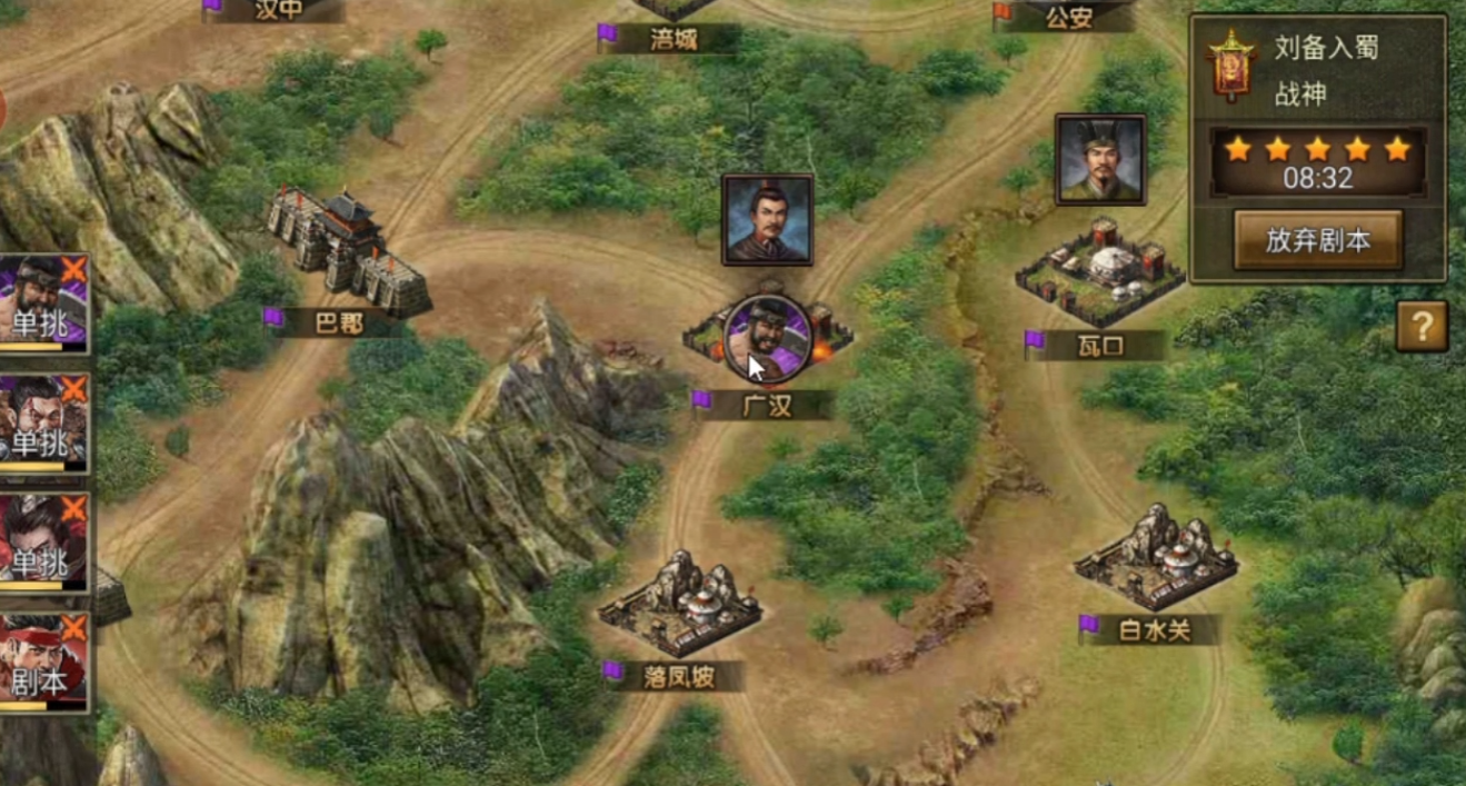 通常推荐的进攻路线是从涪城或广汉开始,依次攻下巴郡、雁桥,最终直取成都。雁桥是一个至关重要的节点,占领后会出现能减少成都守卫的NPC,能帮你降低不少最终战的难度。在推进过程中,每一个城池都不要吝啬影子,尽量刷够数量以保证后续武将能顺利突进。注意那些带有事件标记的城池,比如瓦口,如果你的武将实力足够单挑守军,其实可以忽略它直接推进主线。让残血武将来执行突进刷影子的任务,因为他们阵亡后能快速撤出补血再投入战斗,效率更高。