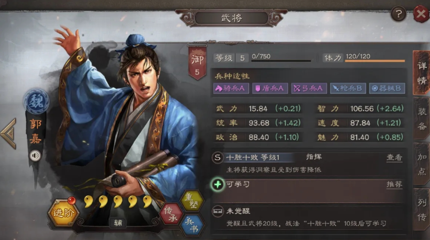 张辽常与郭嘉、夏侯渊等武将组合,利用郭嘉的洞察效果来规避缴械等控制,让A级战法的效果能稳定发挥出来,提升整个队伍的胜率和稳定性。张辽对于兵种和战法的依赖性较强,因此优先选择骑兵兵种如虎豹骑来增强突击战法的发动率,同时兵书选择一鼓作气和胜战等强化爆发的配置,能进一步放大A级战法的收益,让他在PVP或PVE中都能表现出色。新手玩家在培养张辽时,应逐步积累这些A级战法,以低门槛的方式提升战力。