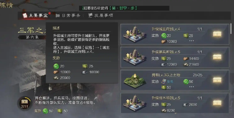 对于玩得久一些的玩家,游戏还准备了一些贴心的回归和传承福利。如果你因为各种原因离开了一段时间,满足了特定的回归条件,那么重新回到游戏时可能会触发专属的回归活动,根据你过去的历史情况,有机会拿到包括虎符在内的各种资源补助,帮助你尽快重新跟上节奏。一些面向全体玩家的长期活动,比如以战令形式呈现的周年献礼,里面的任务门槛通常都不高,完成之后稳稳拿到几千虎符不是难事,而且这类活动的持续时间往往比较长,给了玩家充裕的时间去完成。游戏内像陈情事务这样的日常系统,也时常会刷新出能直接奖励虎符或者加速资源获取的事件,养成随时看一眼并顺手处理掉的习惯,总能有些额外的收获。