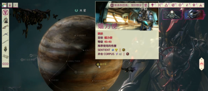 木星BOSS阿拉德五世位于木星刺杀任务节点Themisto。抵达该节点前,玩家需要先完成木星接合点的解锁条件,这些条件通常包括击败前一星球的BOSS(如火星BOSS莱克)、完成特定的任务(如火星的艾斯克雷救援任务),以及在木星的任意任务中累计击杀一定数量的特定敌人(如150名感染单位)。Themisto节点在木星星图上通常位于右上方区域,任务类型明确标注为刺杀(Assassination),是推进星图前往土星的必经之路。