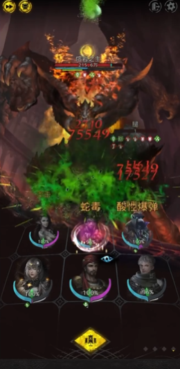 具体的战斗操作需要精细的手动控制。进入战斗后,首先关闭自动战吼和倍速播放。开局的前两轮是熔岩之主的爆发期,伤害很高,需要坦克和治疗全力支撑,确保全员存活。将挂毒角色的技能设置为始终释放中毒技能,同时关闭其他所有技能以避免干扰;治疗角色则只开启群体治疗技能。抗过初期攻击后,集中你单体伤害最高的输出角色攻击BOSS的腿部,迅速将其生命值压制到20万以下(实际约17-18万),使其进入加血循环。