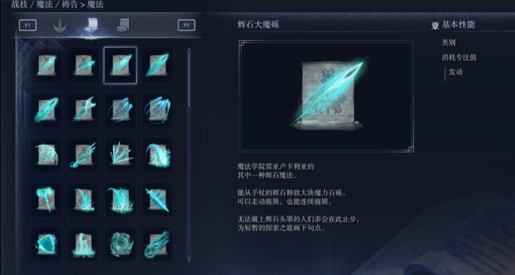 探索路线方面,开局后优先前往艾蕾教堂获取招魂铃与三狼骨灰,随后传送至盖利德地区贤者镇废墟拾取陨石杖。龙息废墟的瑟利亚结晶坑道可获取失色锻造石,用于强化武器。魔法学院内的辉石魔砾与辉石迅魔砾是基础法术的优质选择,而学院卷轴提供的辉石大魔砾则适合应对高血量敌人。