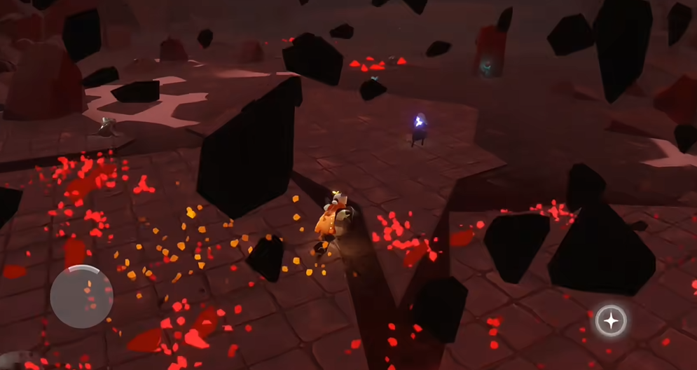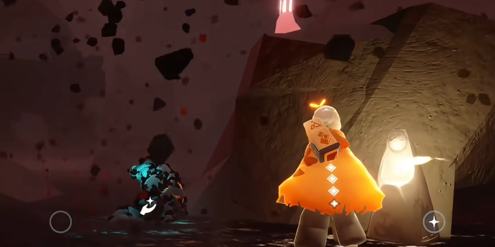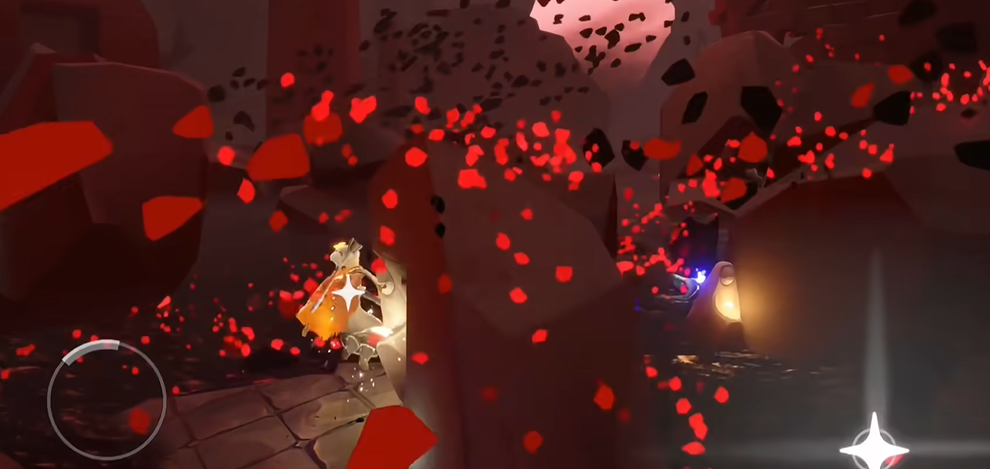 飞石攻击具有规律性,观察其轨迹后选择间歇期快速通过。建议贴地行走或跳跃移动,利用场景中的岩石作为掩体躲避飞石。通过第一段横风区后,废墟中的灯台可补充能量。逆风区域需注意听风声变化,当风力减弱时连续跳跃前进。第二阶段需穿过峡谷地形,左侧存在隐蔽通道可避开部分飞石,最终抵达安全屋获取光翼补充。