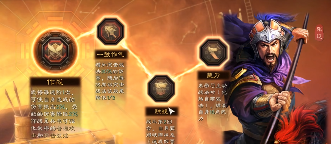 如果选择夏侯渊或张辽作为副将,他们的兵书可以走作战路线,一鼓作气和胜战是不错的选择,这样能在前三回合打出爆发伤害。郭嘉作为辅助武将,可以带军形兵书的严阵以待和守势,提升队伍的减伤能力。乐进如果加入阵容,建议选择作战兵书的蛮勇非勇和武略,配合他的稳定输出特性,能在中后期持续压制对手。