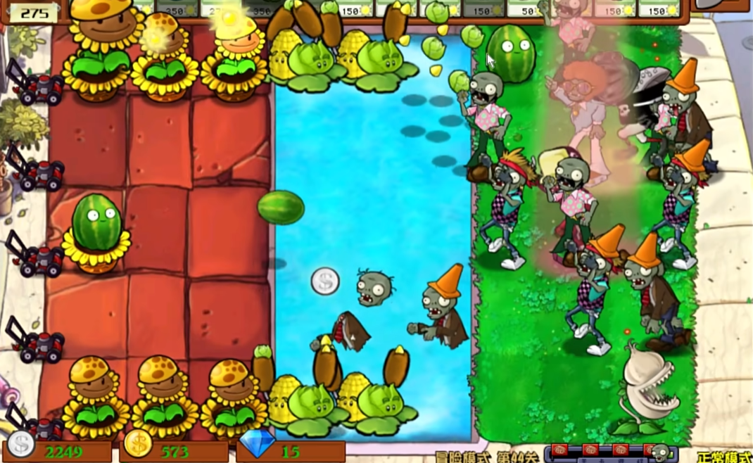 中期阶段需重点防范铁头盔巨人僵尸与头盔舞王的组合攻势。当第二波僵尸出现时,吸铁石坚果应覆盖所有可能出现巨人的路线,同时补充寒冰仙人掌形成交叉火力。寒冰仙人掌的穿透攻击能有效处理成排僵尸,而玉米卷心菜的范围伤害可清除杂兵。此阶段需保持阳光存量在300随时准备补充被破坏的坚果墙。