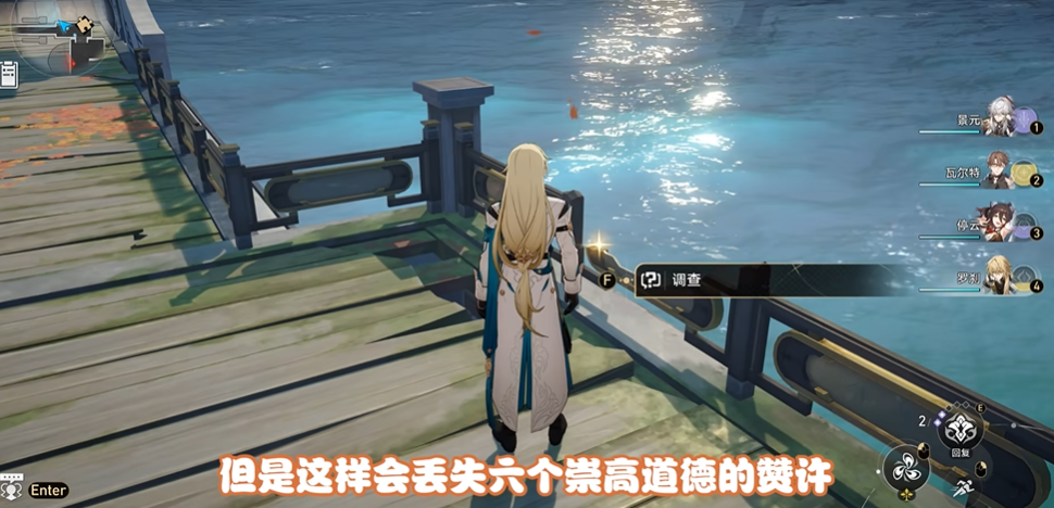 获得炸弹后需前往丹鼎司观颐台附近的湖边,抵达指定位置后将自动触发景元的短信剧情。系统会提供两种处理方式:一是与湖边的发光点交互消耗6个崇高道德的赞许将炸弹投入湖中(完成后返还3个),二是直接前往神策府将炸弹交给青镞。两种选择都不会影响最终成就的获取,但资源消耗存在差异。