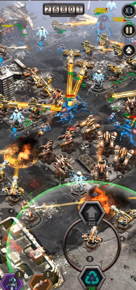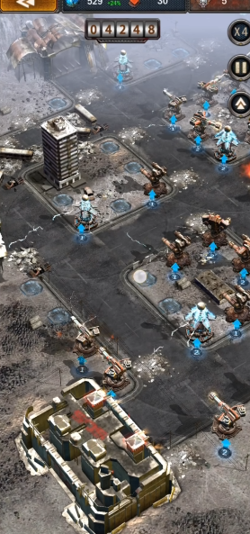 当敌方集中攻击某一区域时,应立即分散兵力实施迂回包抄,同时保留预备队应对突发路线突破。优先消灭炮兵、坦克等高威胁目标,并确保治疗单位始终处于安全位置以维持战线稳定。激光塔应升级至3级以提升单体破甲能力,其355-1068点伤害可有效压制敌方装甲单位。战斗过程中需实时观察兵力损耗,通过加速招募功能及时补充兵员。