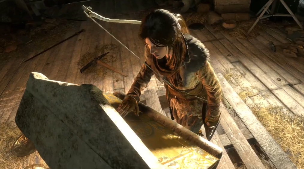 铜矿工厂上层的古墓入口需通过滑索抵达下层水淹矿坑。沿右侧通道前进时,需收集瓶子和布料制作燃烧瓶烧毁路障。当矿车滑落迫使劳拉滑下坡道后,需在房间内利用轨道矿车挡住水流:先烧毁下层白布障碍,再操纵悬吊吊斗使轨道矿车坠落形成通路。关键是要让矿车精准停留在水流冲击位置,否则需重置矿车轨道。该解谜涉及多层空间联动,建议优先激活挖掘坑道营地便于存档。