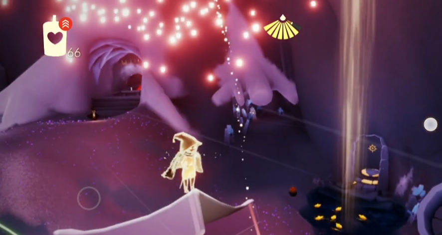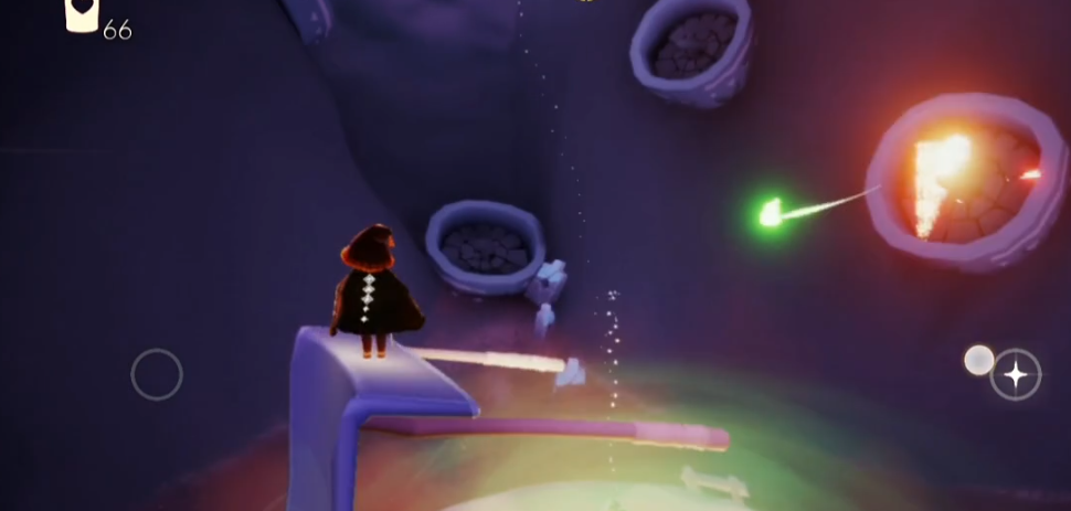 挂机时建议选择大锅边缘或上方的扫帚作为落脚点。虽然锅中央会喷发烛火和魔法球,但直接站在沸腾的绿汤里会持续损失能量。宝贝们可以点燃锅前的绿色光球激活机关,这样大锅会定期喷出黑色魔法球,点燃它们能获得随机效果,同时锅上方会持续生成可收集的烛火。要注意保持角色处于安全位置,避免因能量耗尽而掉翼。