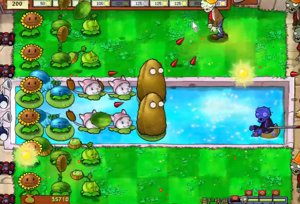中期阶段需要根据僵尸类型调整防御策略。面对普通僵尸时,豌豆射手和坚果墙是最基础的攻防组合。如果遇到铁桶僵尸或撑杆僵尸这类特殊敌人,及时补充高伤害植物如卷心菜投手或寒冰射手。泳池关卡记得提前布置睡莲,为水生植物创造种植空间。