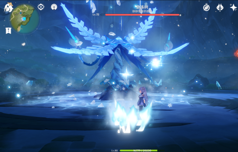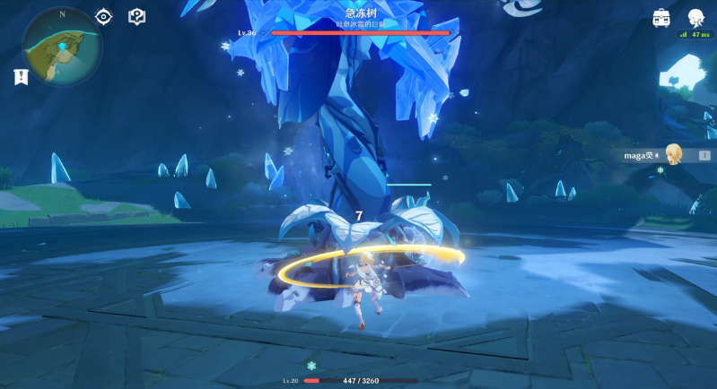 急冻树的技能主要有跟踪冰锥、激光扫射和冰面冻结三种威胁较大的招式。冰锥会追踪移动,建议保持绕圈跑动来躲避;交叉激光出现时,横向闪避比前后移动更安全;当它低头蓄力准备冻结地面时,要立刻远离外圈,否则站在冰面上会持续掉血。头部砸地攻击前摇很明显,看到它抬头蓄力就提前向两侧闪避。