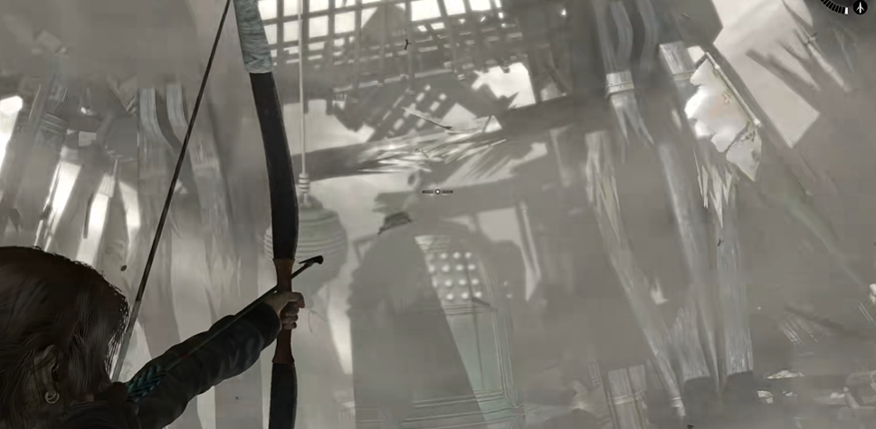 完成一侧的木柱破坏后,关闭当前窗户,再打开另一侧的窗户。重复同样的操作,用绳索箭拉动钟摆撞击另一边的支撑木柱。需必须确保每次只打开一扇窗户,否则风力会相互抵消导致钟摆无法有效撞击。两边的木柱都被破坏后,将两扇窗户同时打开。