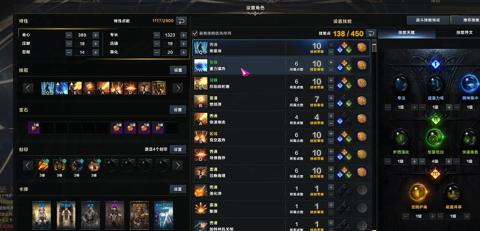 枪炮大师的核心玩法就是火力压制,加点思路得围绕高爆发+稳定输出来展开。首先必满的技能是聚焦射击和爆裂射击,这俩是咱们的主要输出手段,一个打单体一个清小怪,伤害高还容易命中。接着把散射射击的范围和伤害强化点满,这样面对一群敌人时能快速清场。重力炸弹也得重点照顾,强化爆炸范围和伤害后,既能控场又能补输出,实用性拉满。