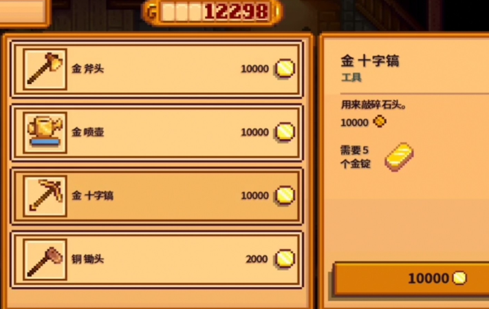 铜稿子是第一个可升级阶段,需要2000金币和5个铜锭。这个阶段的升级显著提高了开采普通岩石的效率,使玩家能够更轻松地收集基础矿石。铁稿子需要5000金币和5个铁锭,升级后可以开采农场中的大型石头,为农场扩张扫清障碍。金稿子的升级成本为10000金币和5个金锭,这个阶段的稿子能够破坏矿井中的陨石,获取稀有资源。