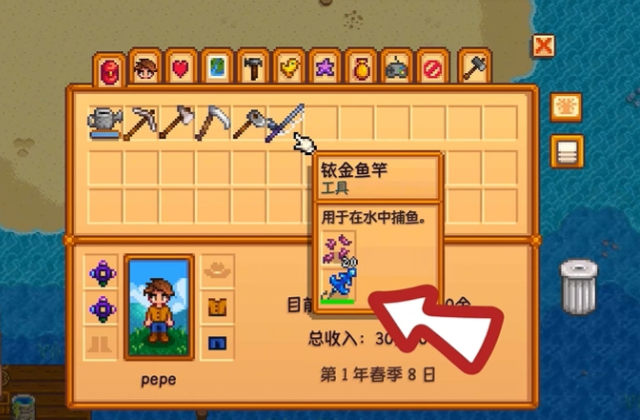 拿到配方后,记得先准备好铱金鱼竿,因为优质浮标只能装在这根高级鱼竿上。安装方法很简单,打开背包,选中浮标后右键点击鱼竿就行。如果想换下来,同样右键点鱼竿就能卸掉。鱼竿上如果挂了鱼饵,得先移除鱼饵才能操作浮标。