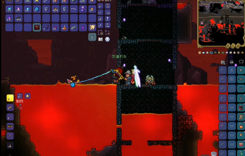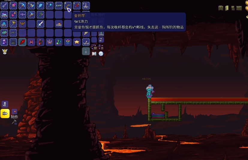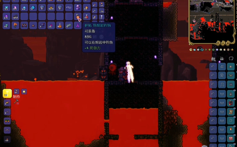 地狱钓饵可不是随便就能抓到的,它们只在地狱生成,而且需要用特殊的工具才能捕捉。最常见的地狱钓饵包括地狱蝴蝶、熔岩萤火虫和岩浆蜗牛,这些小家伙平时就在岩浆附近飞来飞去或者爬来爬去,看起来挺显眼的,但普通虫网可抓不住它们,必须用防熔岩虫网或者金虫网才行。防熔岩虫网可以用15个狱石锭和普通虫网在地狱熔炉合成,而金虫网则是完成渔夫任务后的小概率奖励。