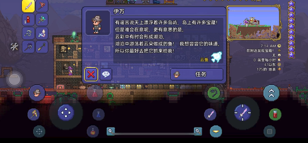 在泰拉瑞亚中钓到云鱼需要满足特定条件并掌握正确方法。云鱼是一种稀有鱼类,仅出现在天空中的天湖或云层水塘中,玩家必须首先找到渔夫NPC并领取钓云鱼的任务。渔夫会在击败第一个BOSS后随机生成在世界某处,安置好渔夫后每天可接取一次钓鱼任务,当任务要求捕获云鱼时即可开始准备。