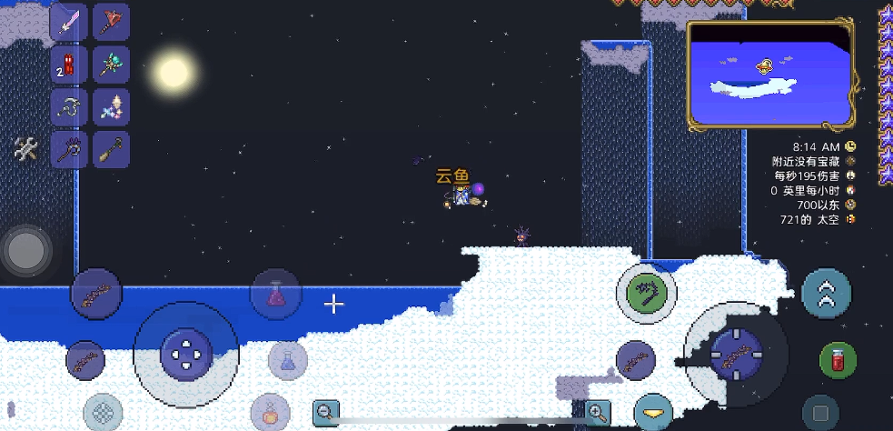 钓鱼地点需选择悬浮在空中的天湖或云层水塘,这类水体通常位于地图高空区域。水域面积至少需要75格才能正常钓鱼,若水体过小会影响渔力值导致效率降低。建议使用无底水桶等工具扩大水体规模,确保钓鱼环境达标。云鱼的出现不受时间限制,但满月或雨天等特殊天气会提升捕获概率。