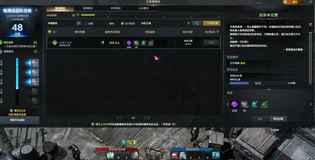 在恶民根据地消灭冰霜强盗团怪物后,玩家可以回收任务所需的冰霜团道具。之后需要返回与NPC戴森进行交谈,完成对话后即可回到原来位置。这个任务会提供丰富的奖励,包括声望值、远征队经验值以及银币等资源。