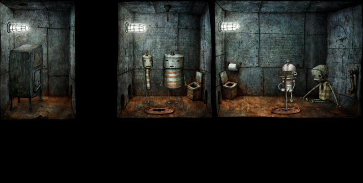 顺利通过机械迷城监狱关卡,首先得搞定牢房里那个想抽烟的机器人。在牢房右边墙上找到一个水龙头把手,记得收起来,另一边墙上还有一卷纸巾也别放过。把水草放到灯泡上烤干,再和卷纸组合成卷烟送给机器人,它会开心地和你握手,结果手掉下来了。这时候拿起机器人的手,走到左边墙的小洞处,把手伸过去摇动柜子,扫把会掉下来,记得捡起来。把扫把和水龙头开关组合成工具,就能打开下水道盖子钻进去了。