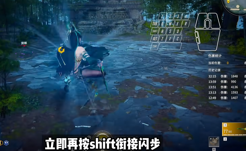 闪步后的两次右键不能按得太慢,否则会变成普通攻击。有个小技巧是可以在奔跑状态下直接按Shift接右键,这样出手更快更突然。如果咱们习惯按住右键蓄力的话,也能触发这个技能,但连点的方式更干脆利落。记得在训练场多练几次,找到最适合自己的手感。